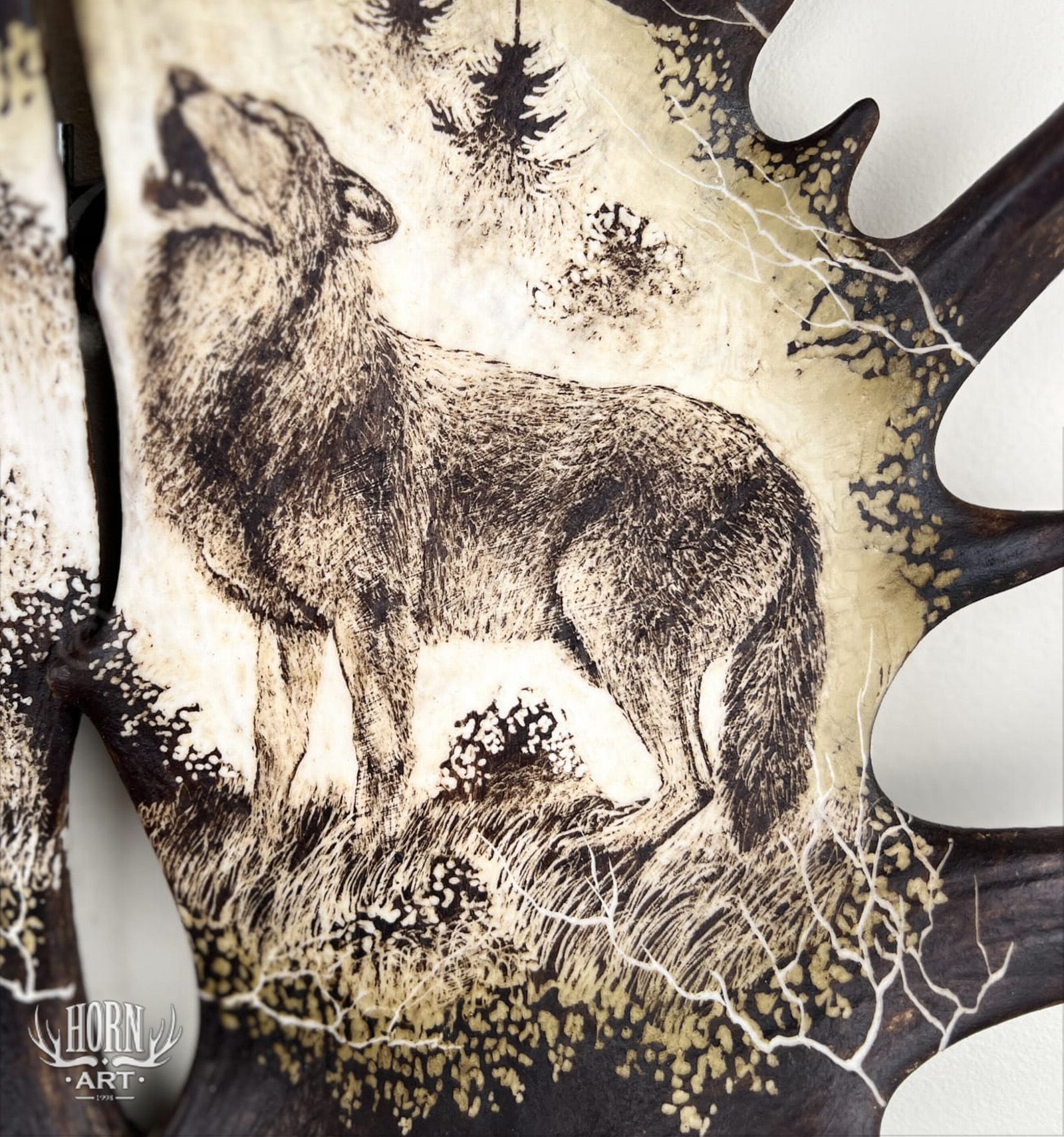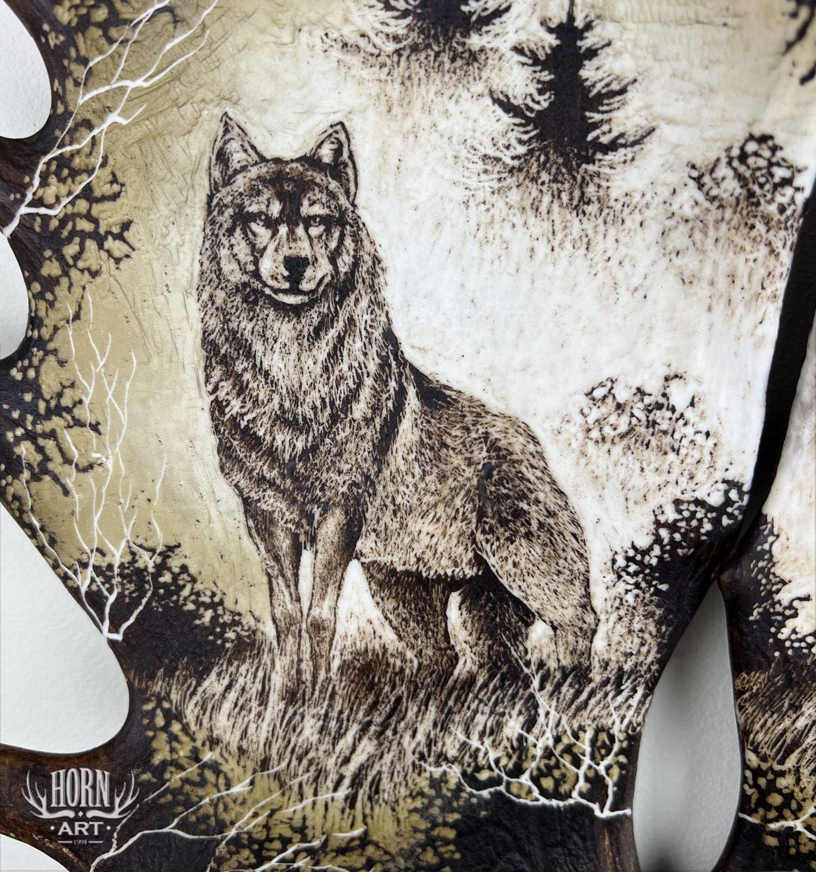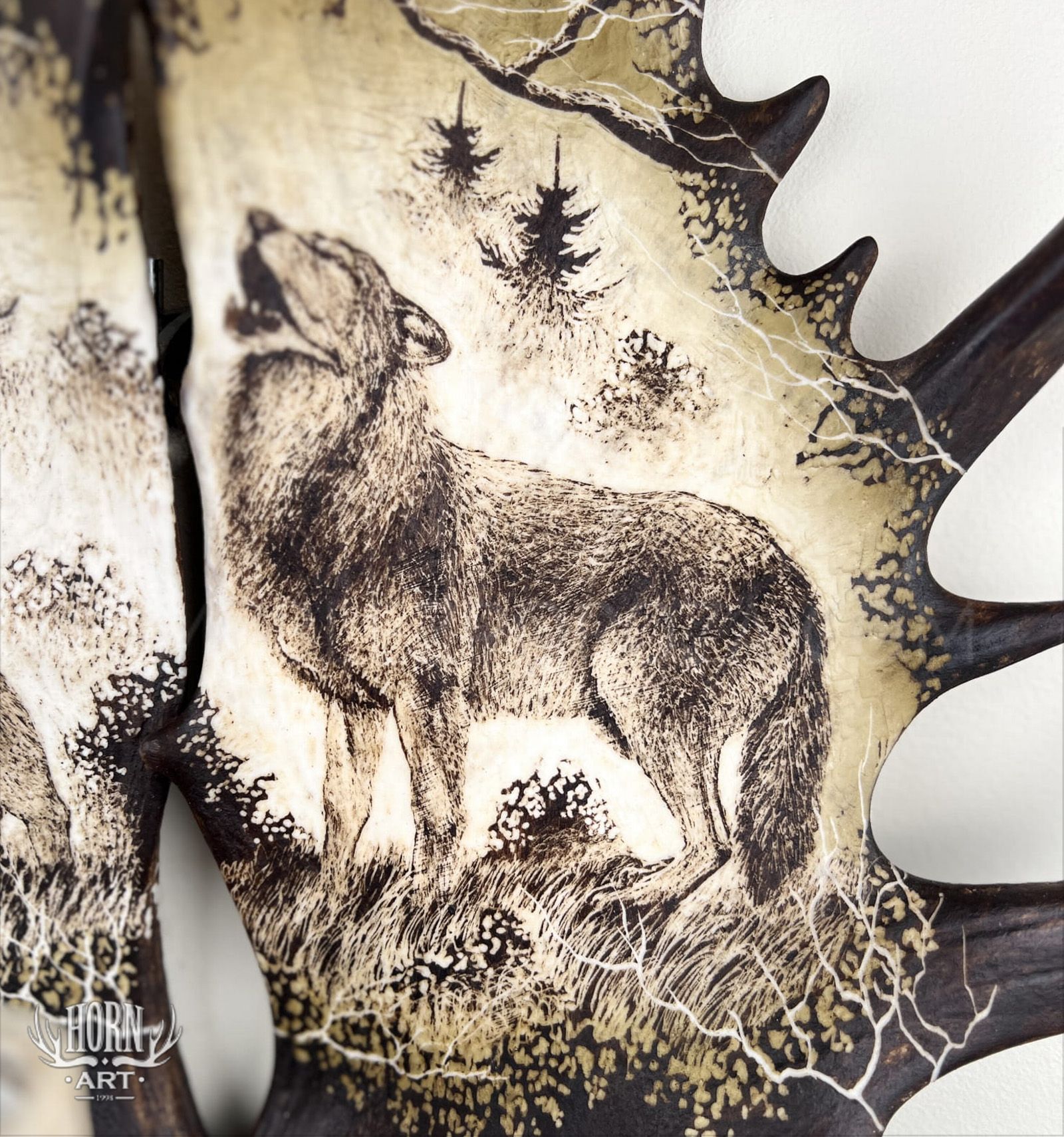 Dekoracja: precyzyjny grawerunek wilków, podkreślający unikatowy styl