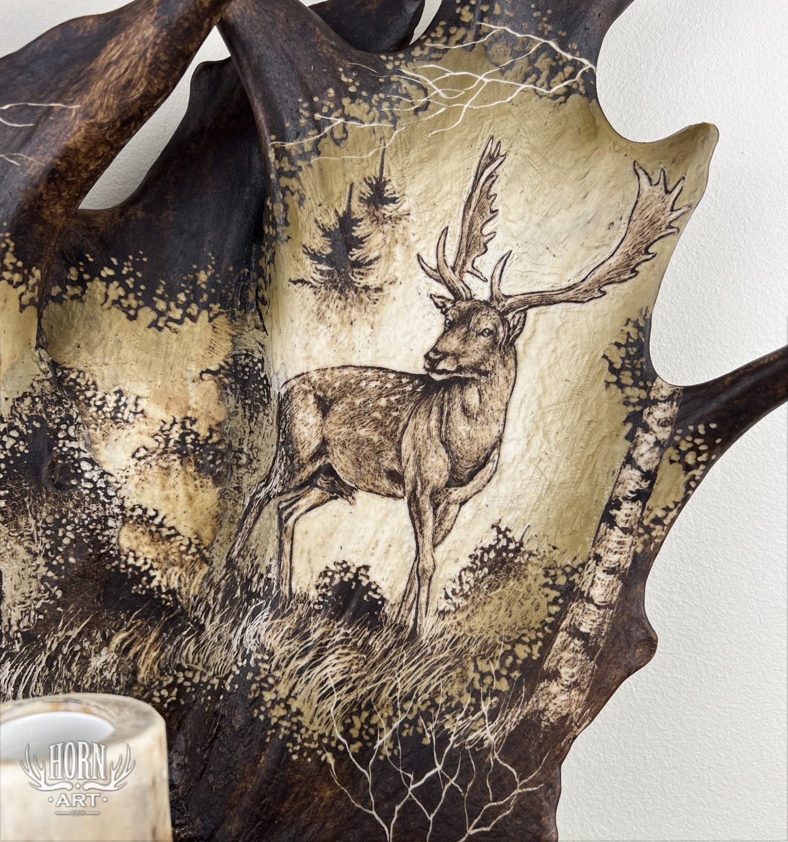 Ręcznie wykonany z naturalnych łopat daniela z precyzyjnym grawerunkiem